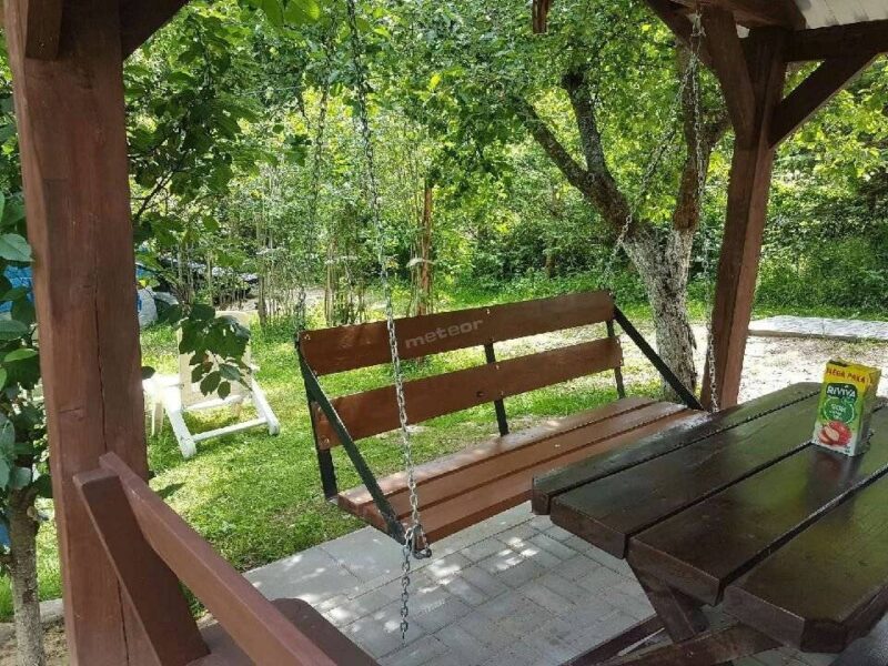 - Kuchnia, łazienka, zadaszone siedzisko, huśtawka