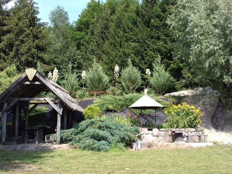 - Zadaszone siedzisko, kamienny grill, boisko do siatkówki