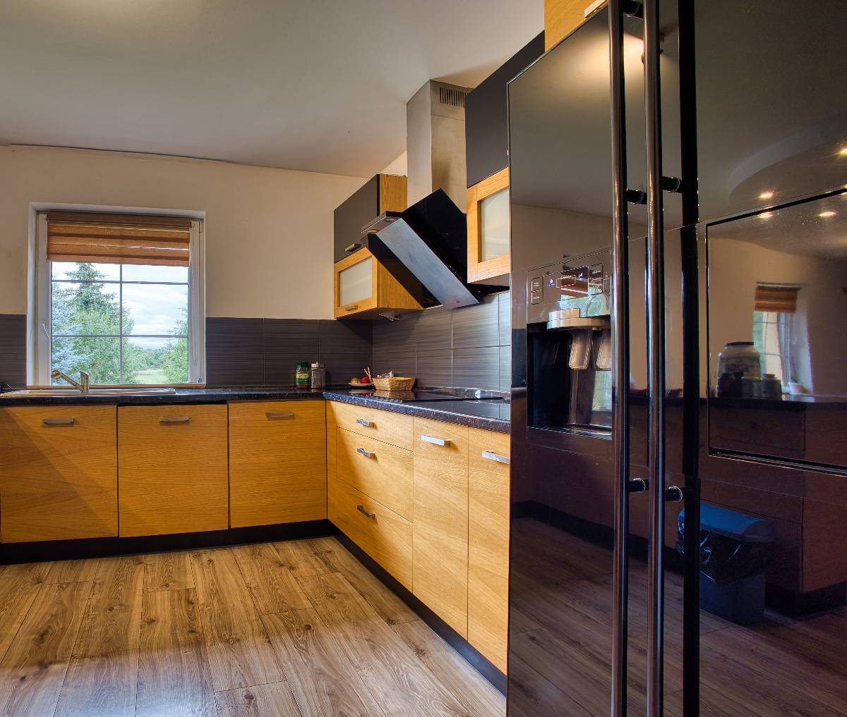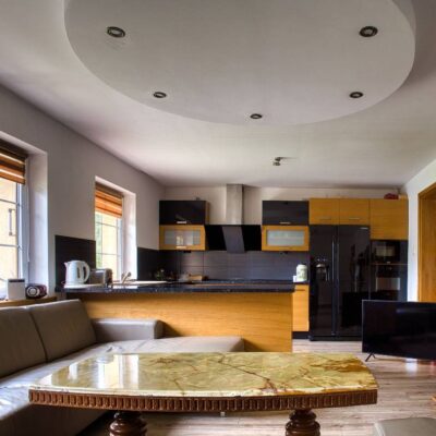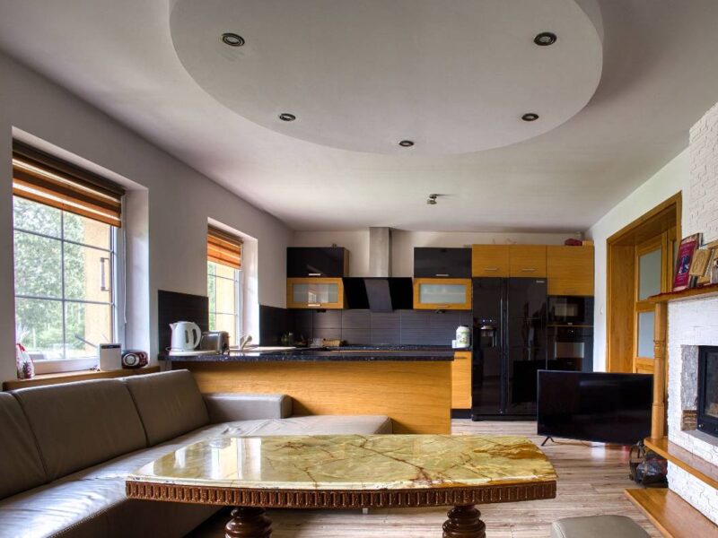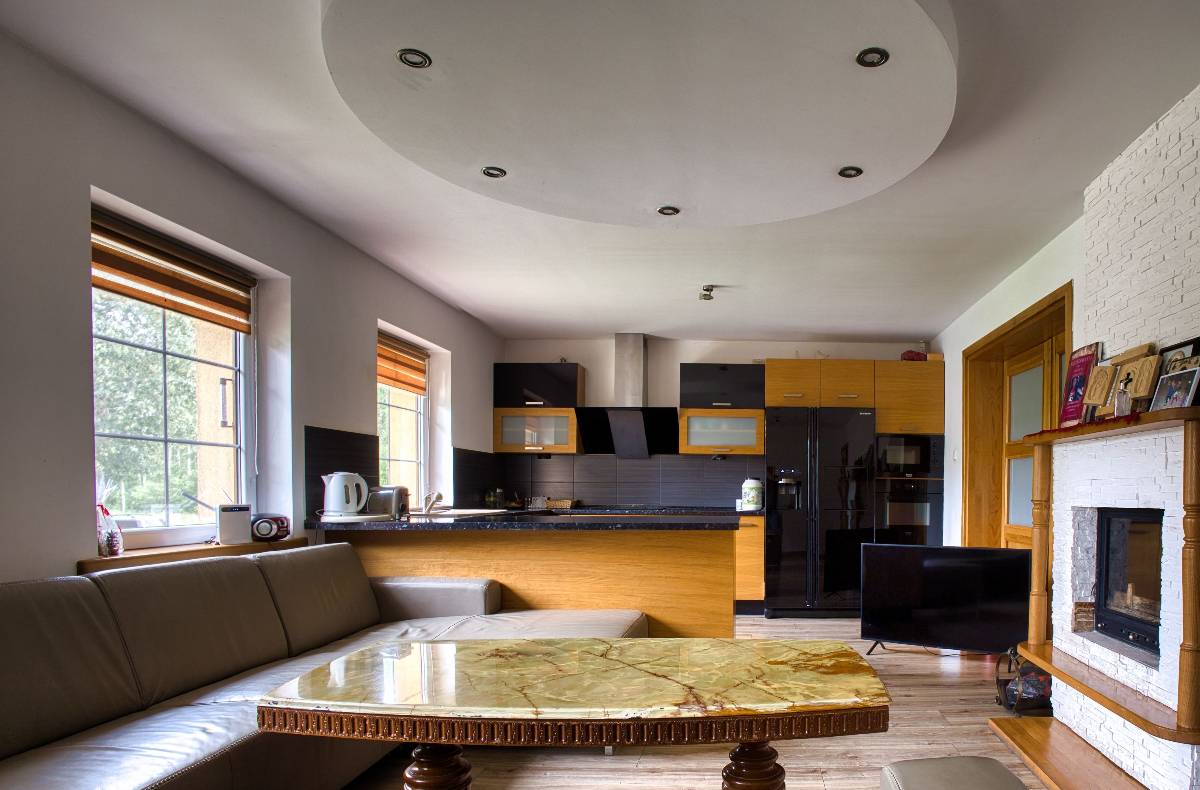 ✔ Kominki dwustronne – w salonie i kuchni, tworzące wyjątkową atmosferę.