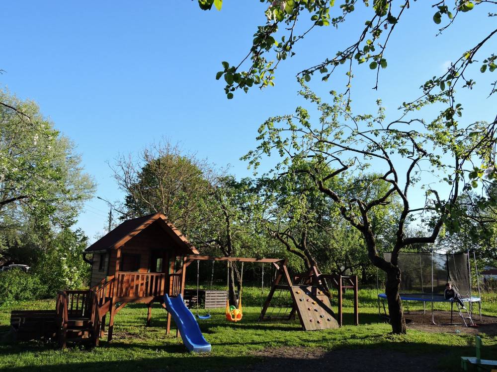 - 🏰 Prywatny plac zabaw z domkiem, zjeżdżalnią, huśtawkami, ścianką wspinaczkową i piaskownicą,