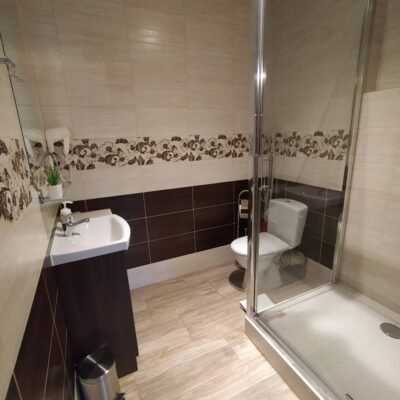 - Łazienkę z prysznicem, suszarką do włosów i ręcznikami