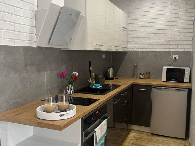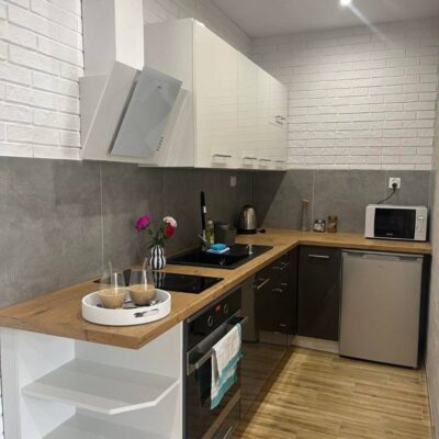- 🛋 Salon z aneksem kuchennym – płyta indukcyjna, pełne wyposażenie kuchenne
