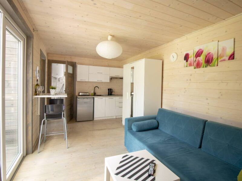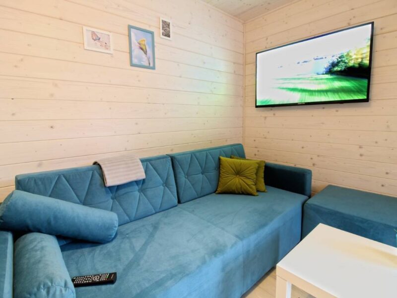 ✅ Przestronny salon – wyposażony w wygodną sofę, telewizor oraz strefę wypoczynkową.