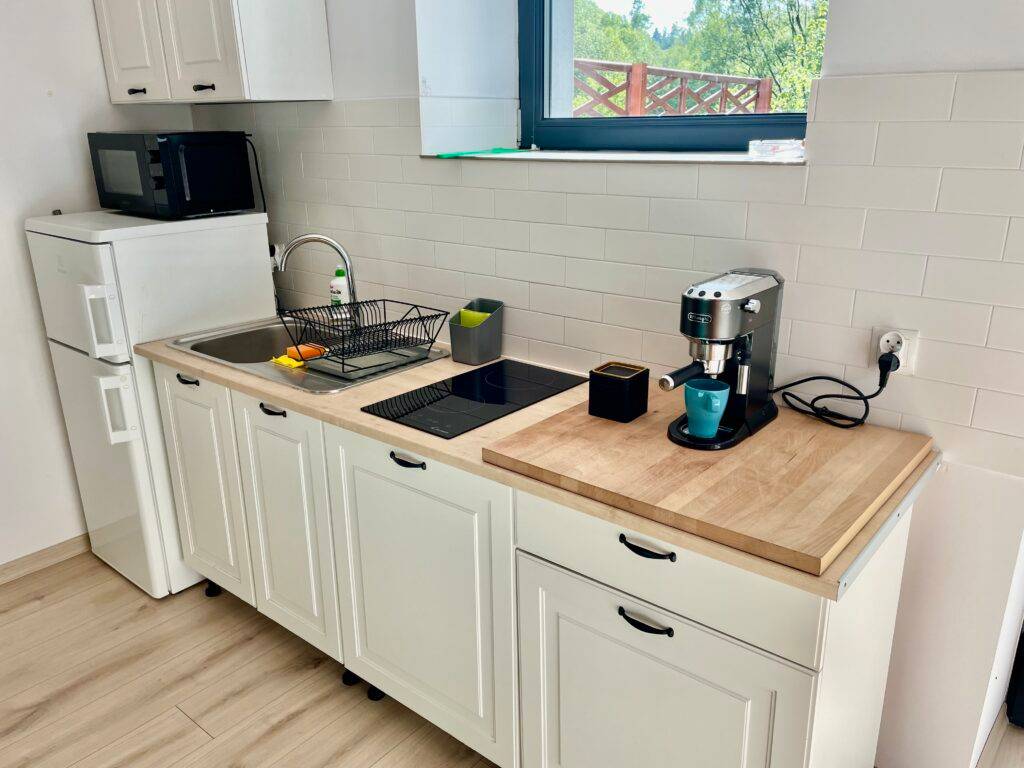- 🍴 Aneks kuchenny z kuchenką, mikrofalówką, lodówką i pełnym wyposażeniem,