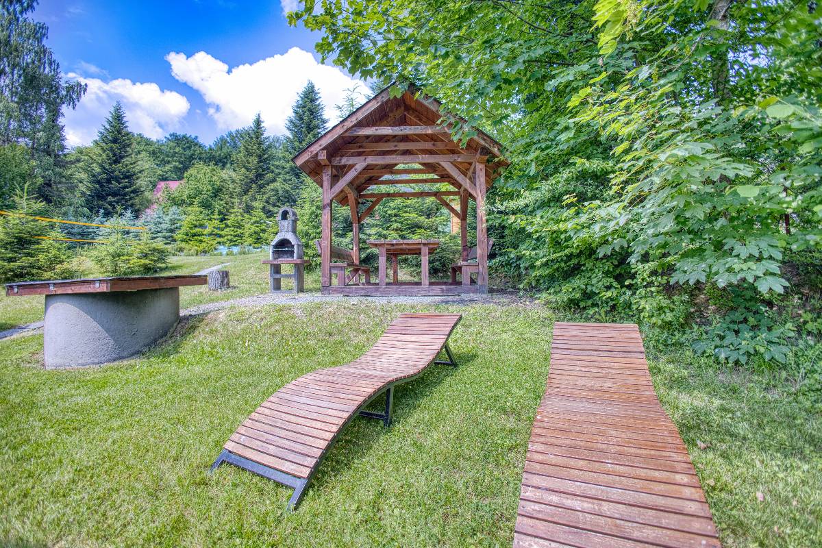 - 🔥 Wiata ogniskowa i grill – przy każdym domku znajduje się miejsce do grillowania i wspólnego biesiadowania przy ogniu,