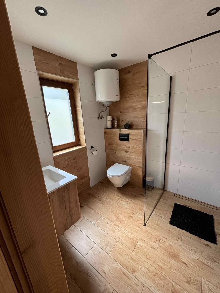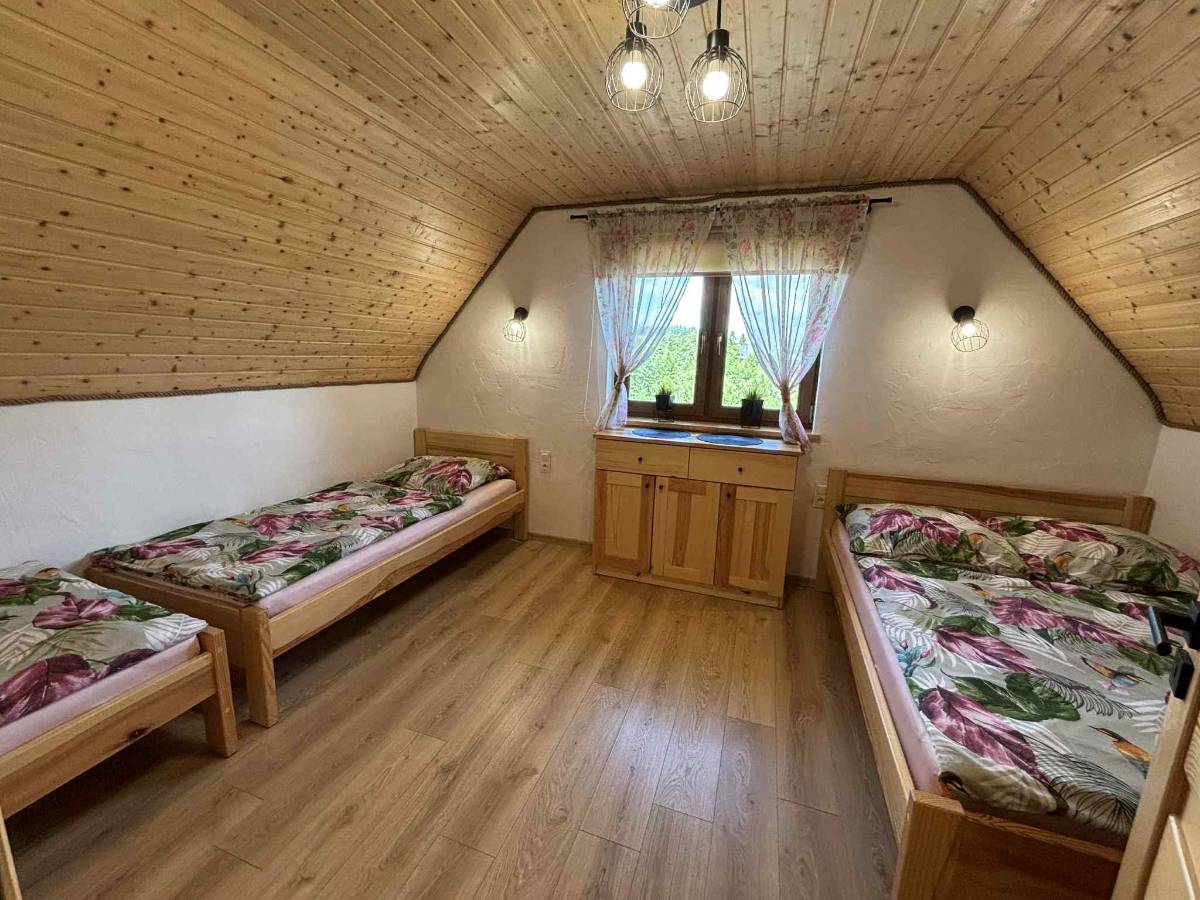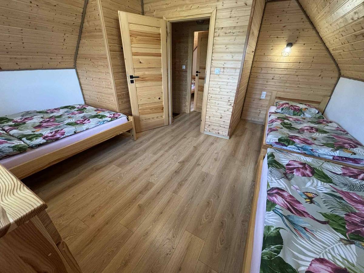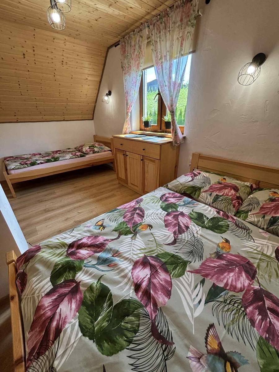 - 🛏 Dwa pokoje na piętrze – jeden trzyosobowy i jeden czteroosobowy, idealne dla rodzin i przyjaciół.