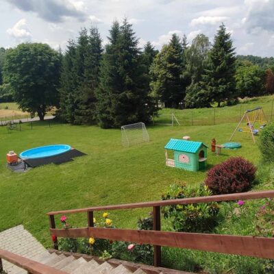 - 🎠 Plac zabaw – huśtawka, piaskownica, trampolina.