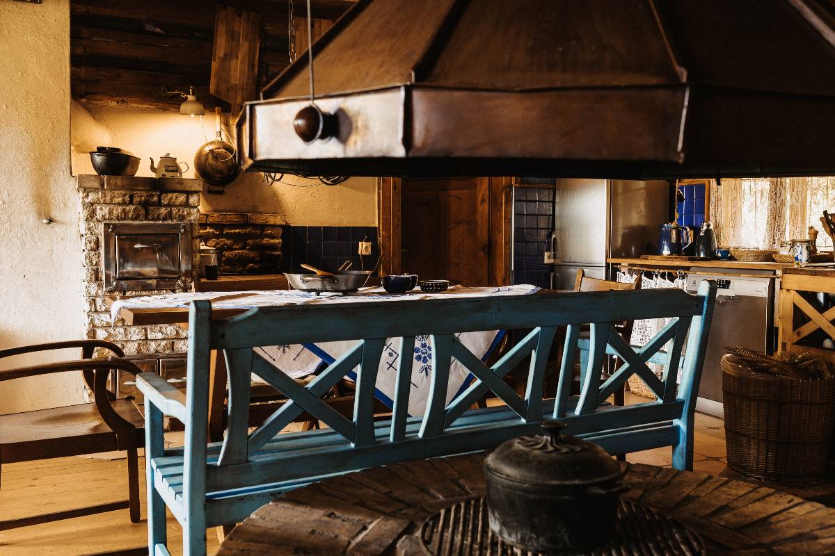 Centralnym punktem domu jest wspólny stół biesiadny, otwarte palenisko oraz piec na drewno. Goście samodzielnie rozpalają w piecu, ogrzewając wnętrza i wodę – dostępna jest także opcja ogrzewania elektrycznego. Drewno jest przygotowane i pocięte. 🔥