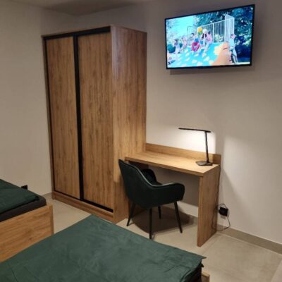 - 🏡 Pokoje „EKONOMICZNE” – 2-3 osobowe, łazienka na korytarzu, dostęp do kuchni, TV, Wi-Fi, lodówka
