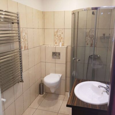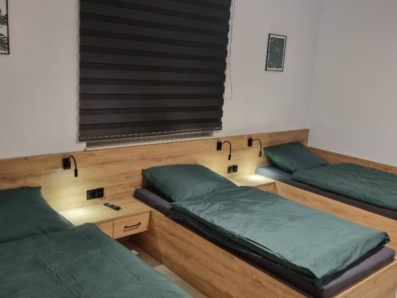 - 🏡 Apartament „DOLNY” – 3 pokoje, 3 łazienki, kuchnia, 9 łóżek