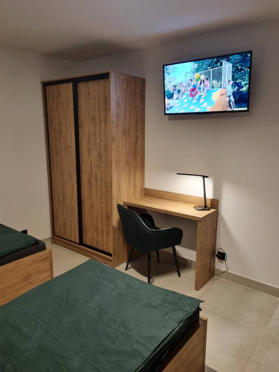 - 🏡 Pokoje „EKONOMICZNE” – 2-3 osobowe, łazienka na korytarzu, dostęp do kuchni, TV, Wi-Fi, lodówka