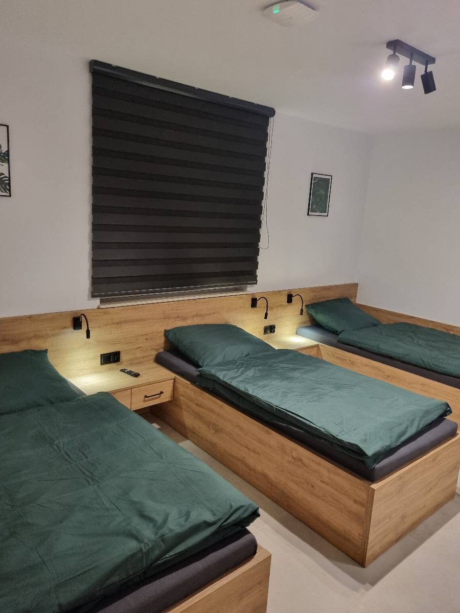 - 🏡 Apartament „DOLNY” – 3 pokoje, 3 łazienki, kuchnia, 9 łóżek