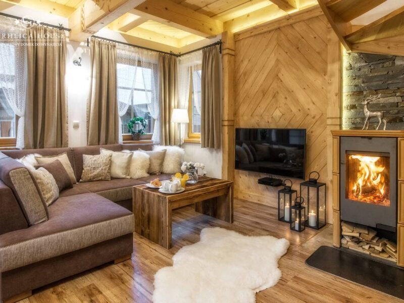 - 🔥 Salon z kominkiem – idealny na chłodne wieczory.