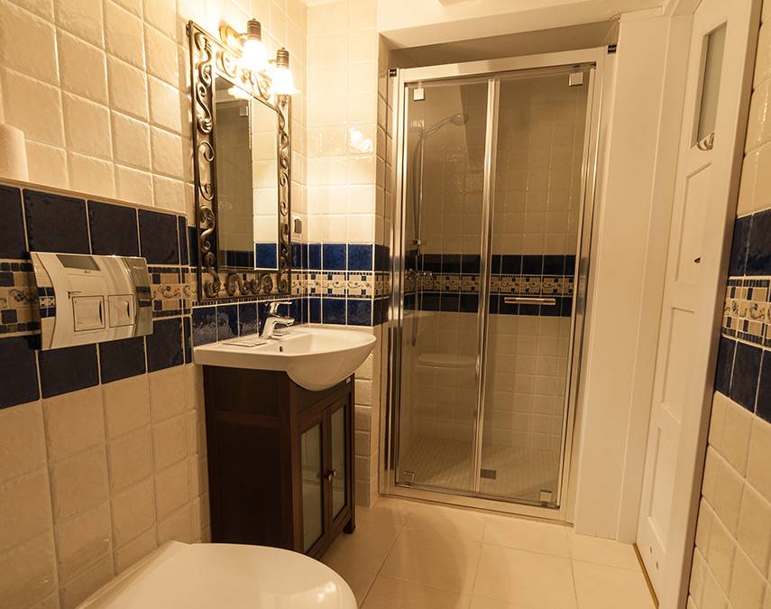 - Apartament rodzinny (pokój nr 5) – 620 zł/doba (4 osoby) lub 820 zł/doba (6 osób), 3 sypialnie, 2 łazienki, prywatna kuchnia z jadalnią, taras i widok na jezioro