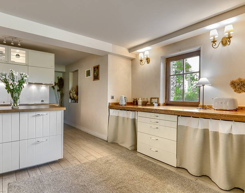 Obiekt ma charakter butikowy – pokoje urządzone są indywidualnie, z dbałością o styl i wygodę. Do dyspozycji Gości pozostaje również wspólna kuchnia oraz jadalnia z kominkiem, gdzie można spokojnie zjeść posiłek i odpocząć po dniu spędzonym na Mazurach.