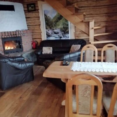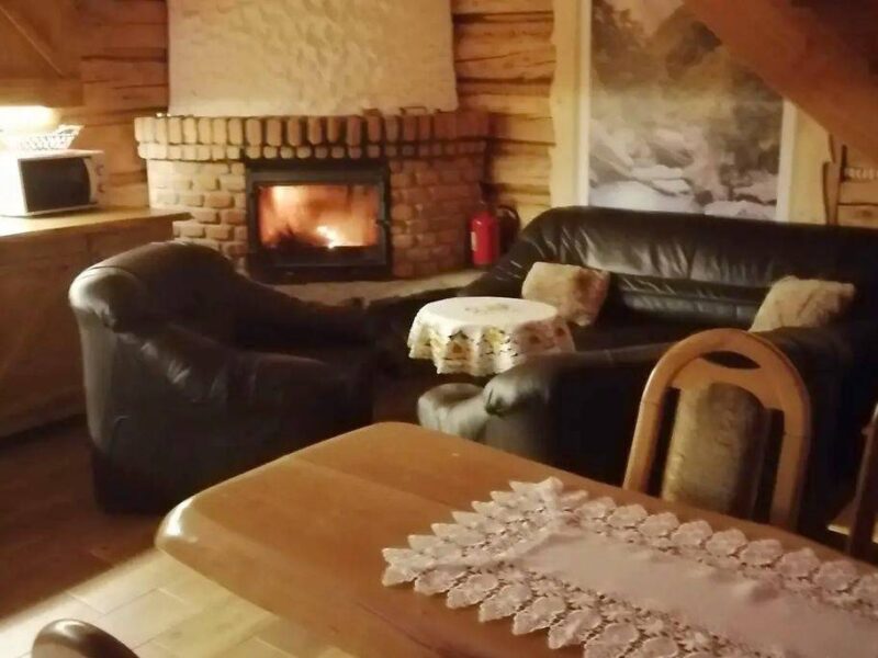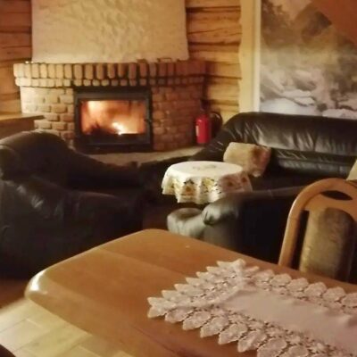 - 🔥 Salon z kominkiem – idealne miejsce na wieczorne relaksy, wyposażony w rozkładaną sofę i telewizję satelitarną.