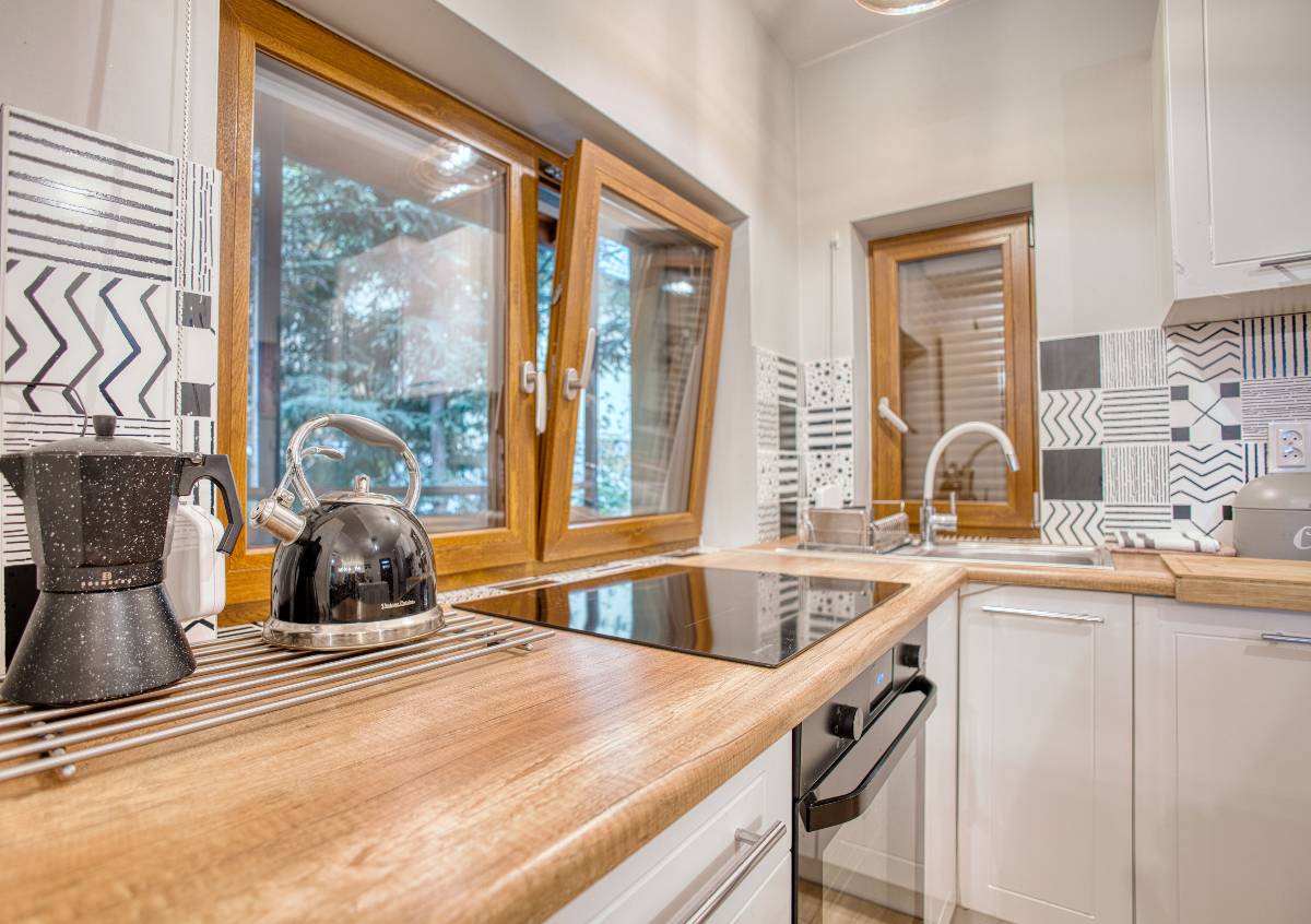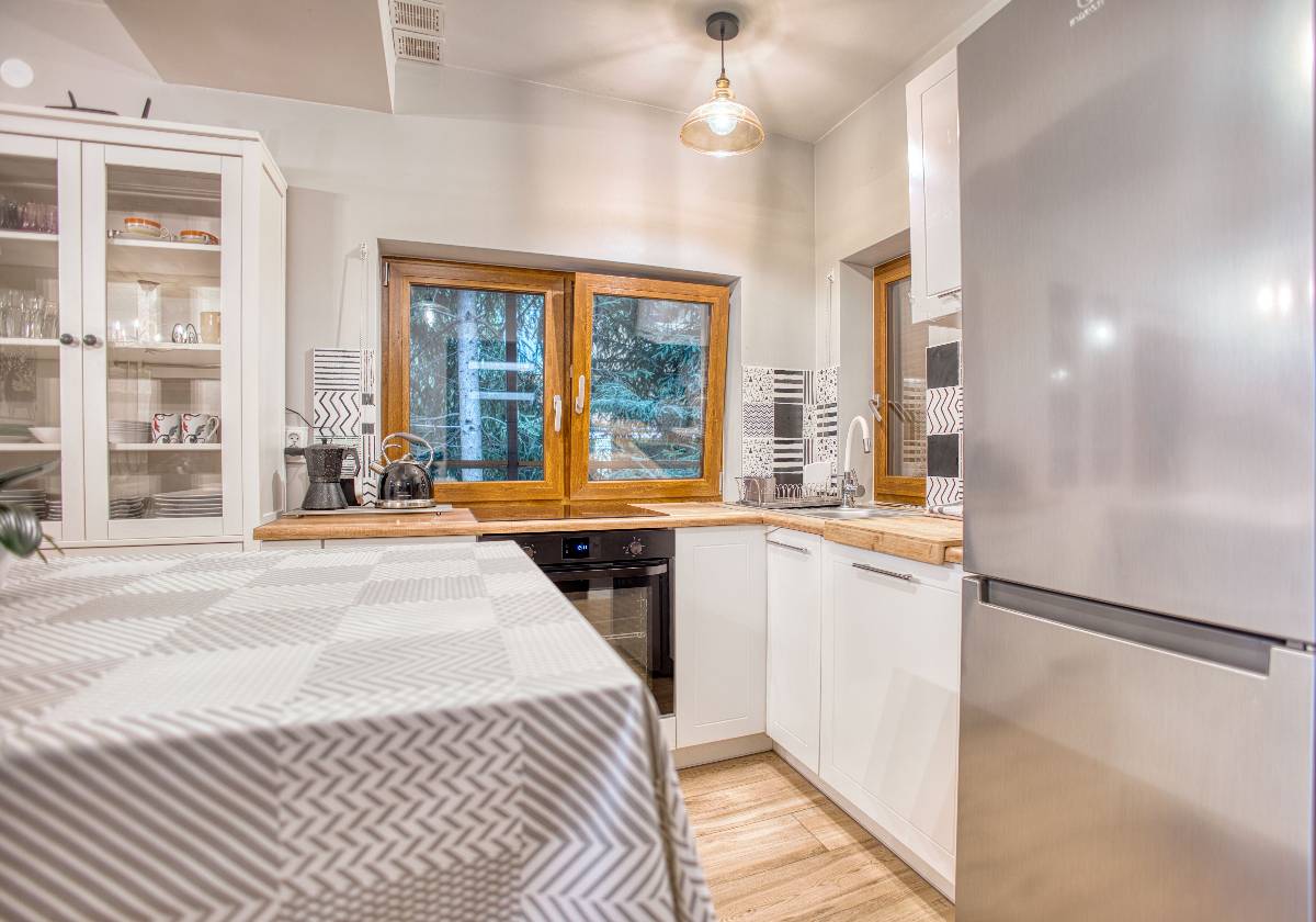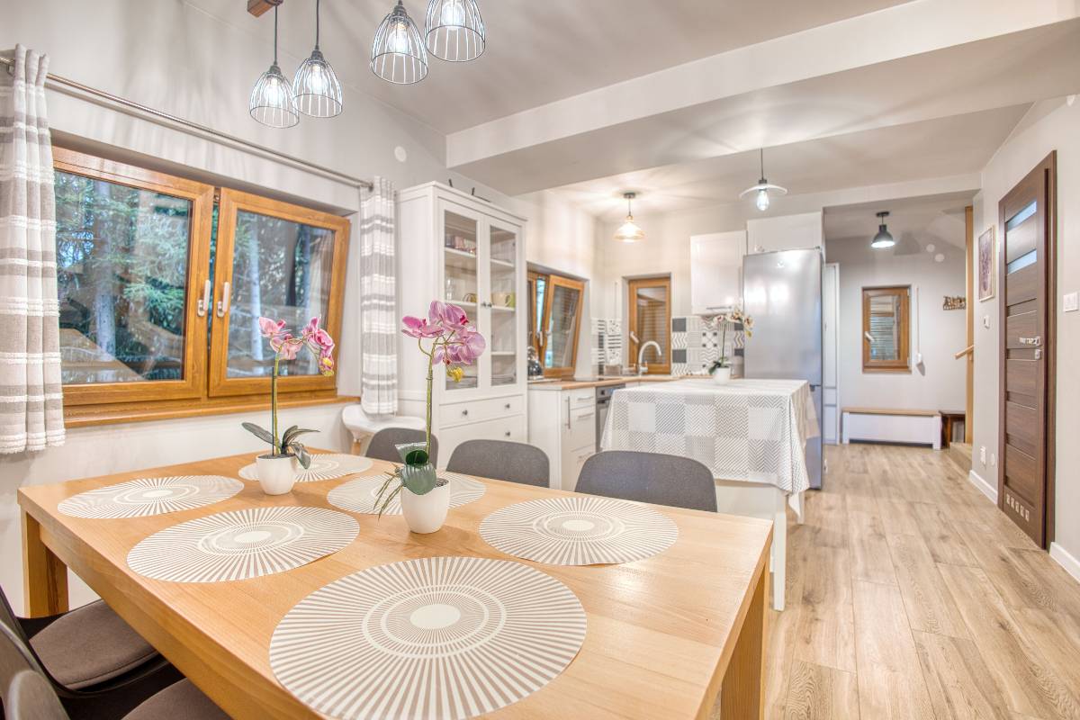- 🍳 Aneks kuchenny lub kuchnia z pełnym wyposażeniem (lodówka, płyta grzewcza, naczynia, czajnik),