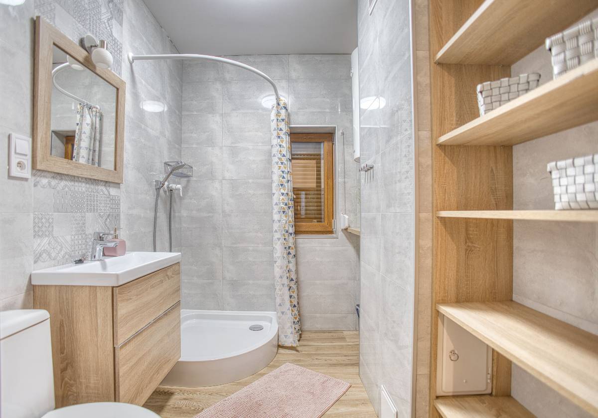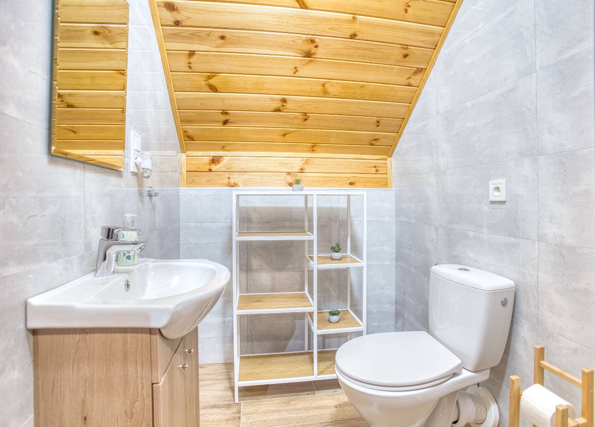 - 🚿 Łazienka z prysznicem i zestawem podstawowych udogodnień, dodatkowa toaleta na piętrze