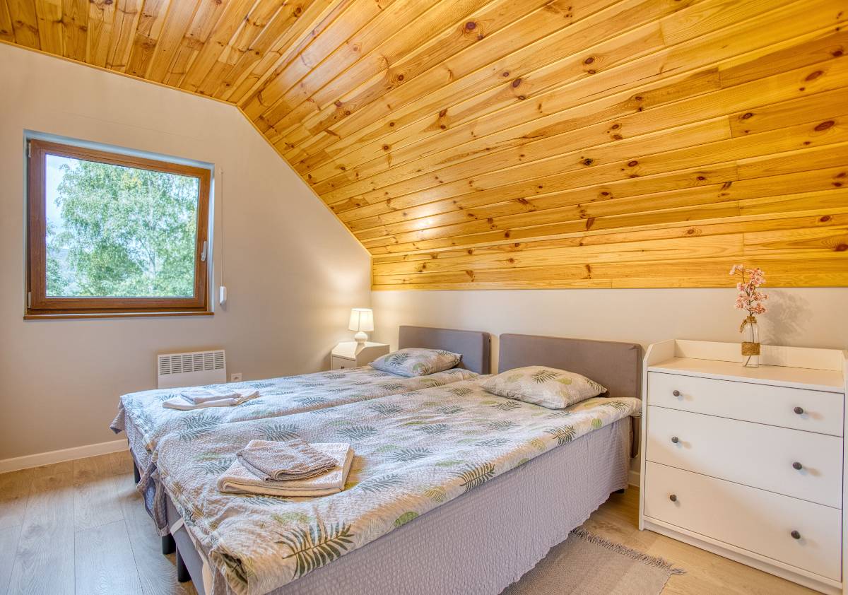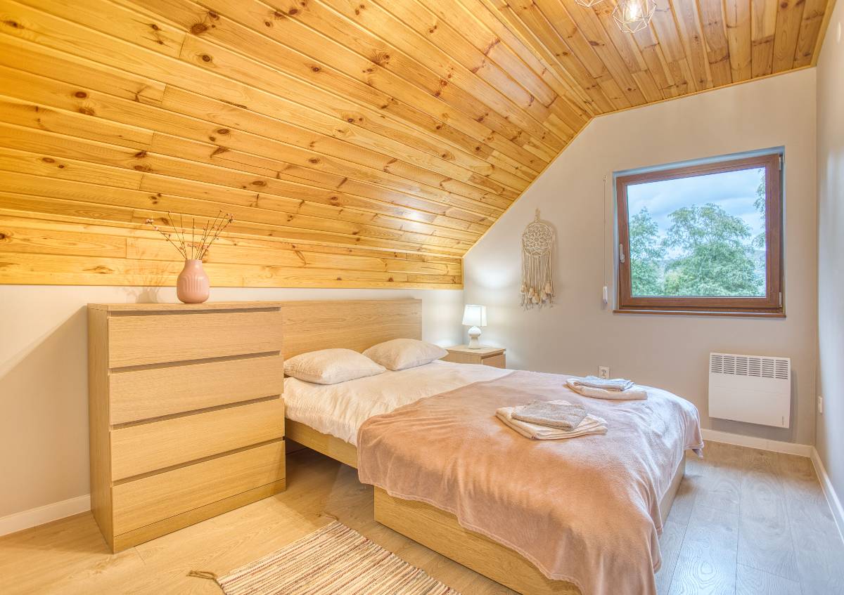 Do dyspozycji Gości oddajemy 4 przytulne, całoroczne domki – każdy z nich urządzony z dbałością o wygodę i funkcjonalność. Łącznie zapewniamy 8 miejsc noclegowych, w pełni przygotowanych na letni wypoczynek i zimowe pobyty w górach.