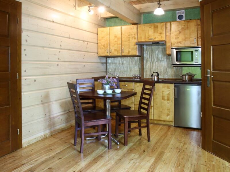 - 🍽 Aneks kuchenny – z lodówką, płytą indukcyjną, kuchenką mikrofalową, czajnikiem i kompletem naczyń.