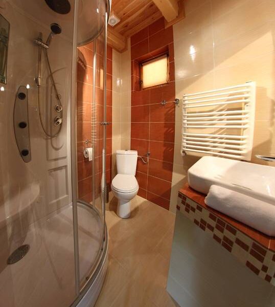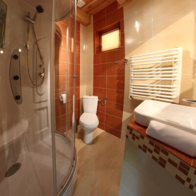 - 🚿 Nowoczesna łazienka – z kabiną prysznicową z hydromasażem, ręcznikami i suszarką do włosów.