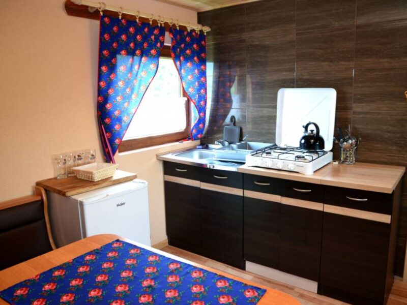 - 🍽 Nowoczesny aneks kuchenny – w pełni wyposażony (lodówka, płyta, naczynia, garnki).