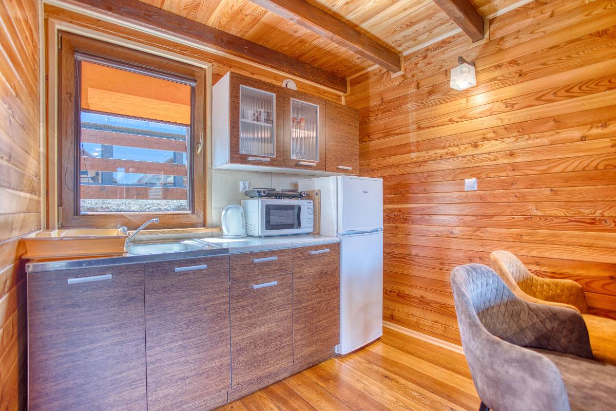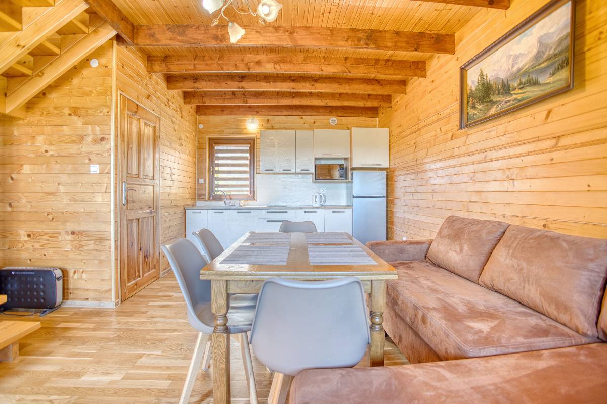 Oferujemy 5 klimatycznych, drewnianych domków z funkcjonalnym układem i nowoczesnym wyposażeniem. Każdy domek posiada: