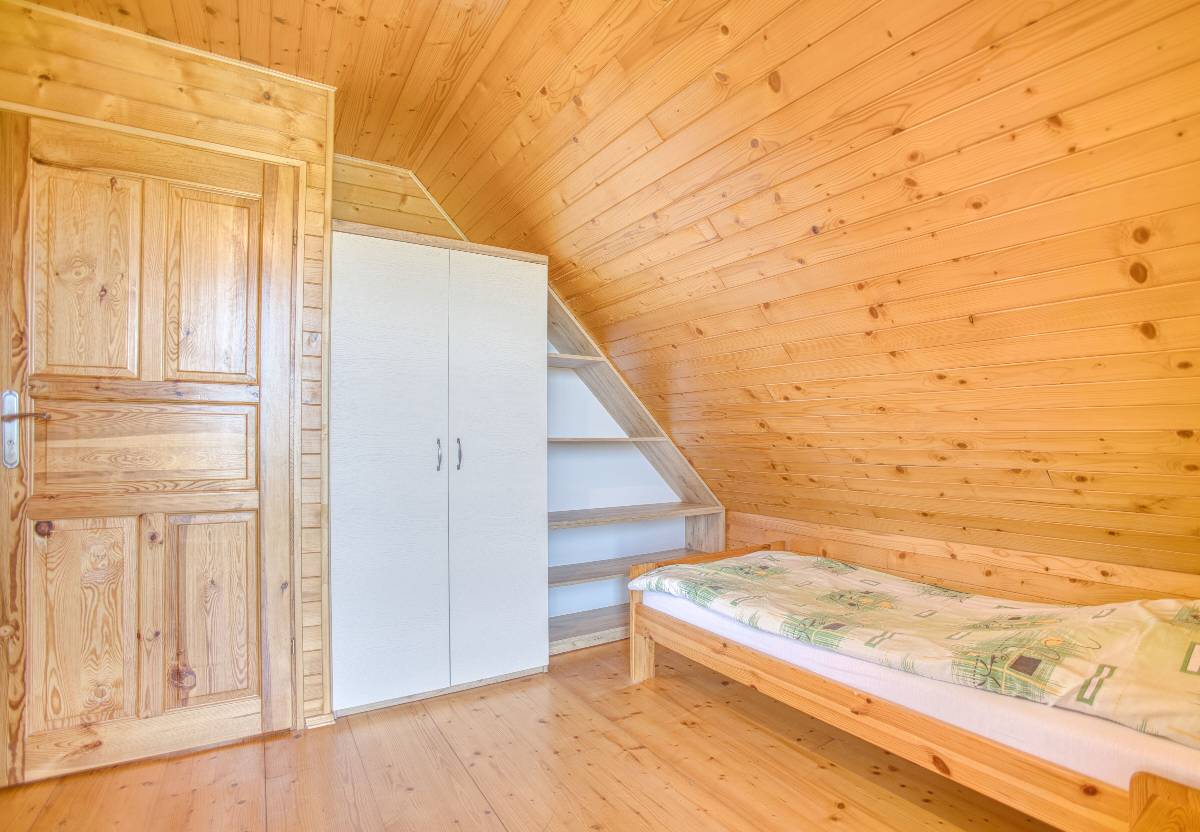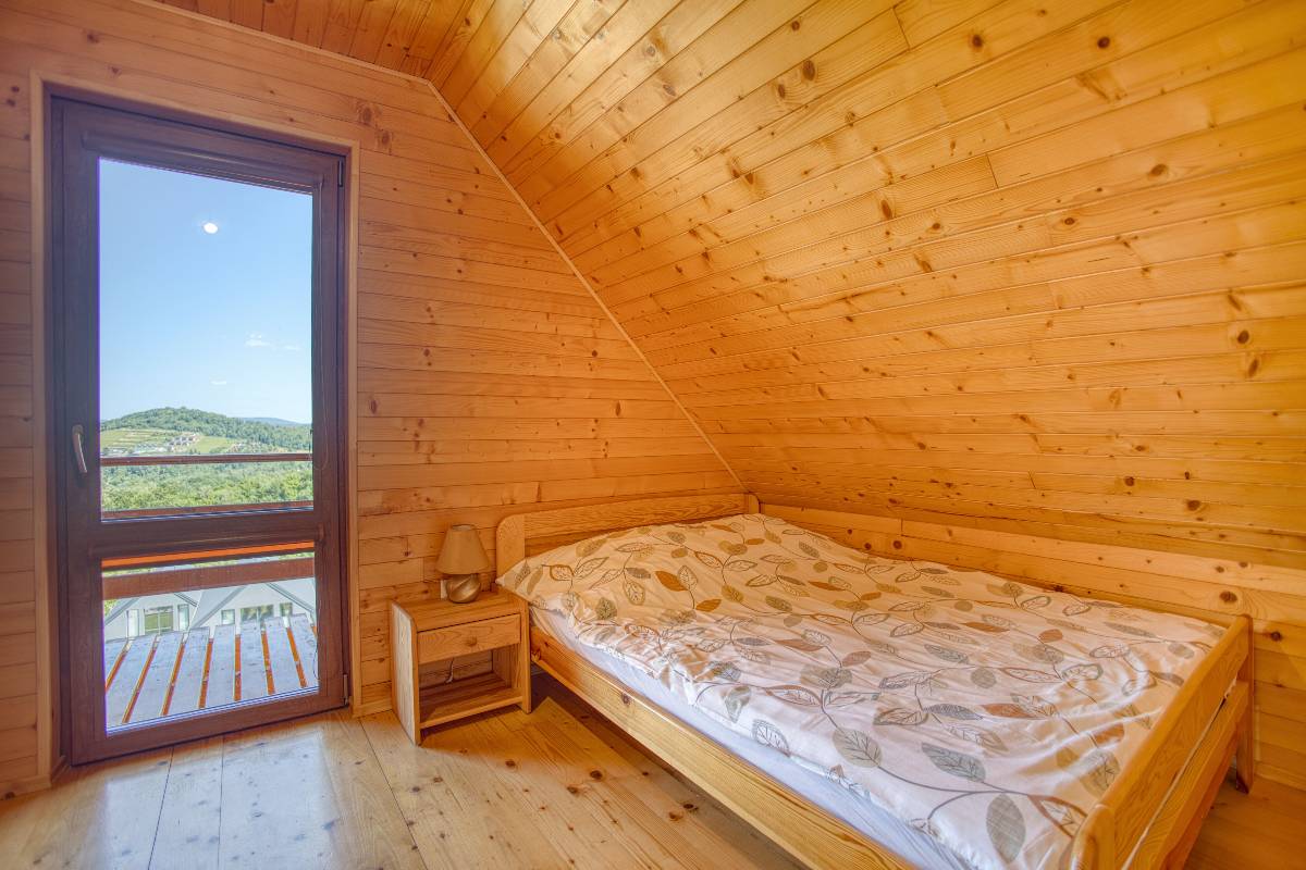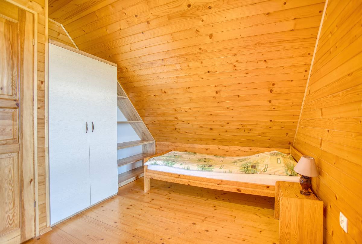 - 🏡 Domek mniejszy: 2 sypialnie (jedna z balkonem), 1 łóżko podwójne + 2 łóżka pojedyncze.