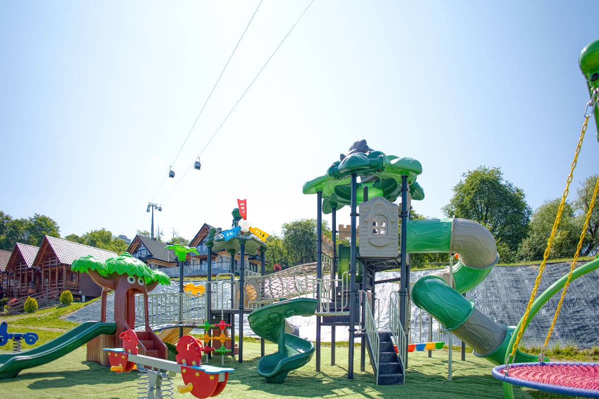 - 🧒 Plac zabaw dla dzieci – huśtawka, trampolina i bezpieczna przestrzeń do zabawy,