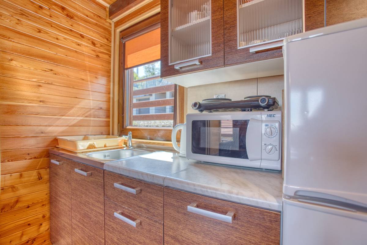 - 🍴 Kuchnię z pełnym wyposażeniem – płyta, mikrofalówka, lodówka, naczynia,