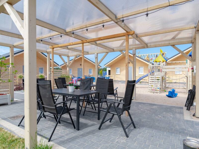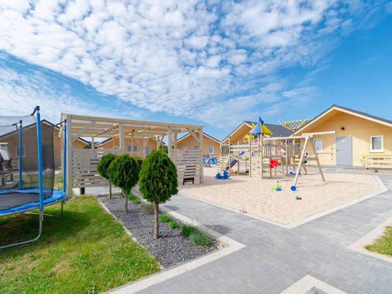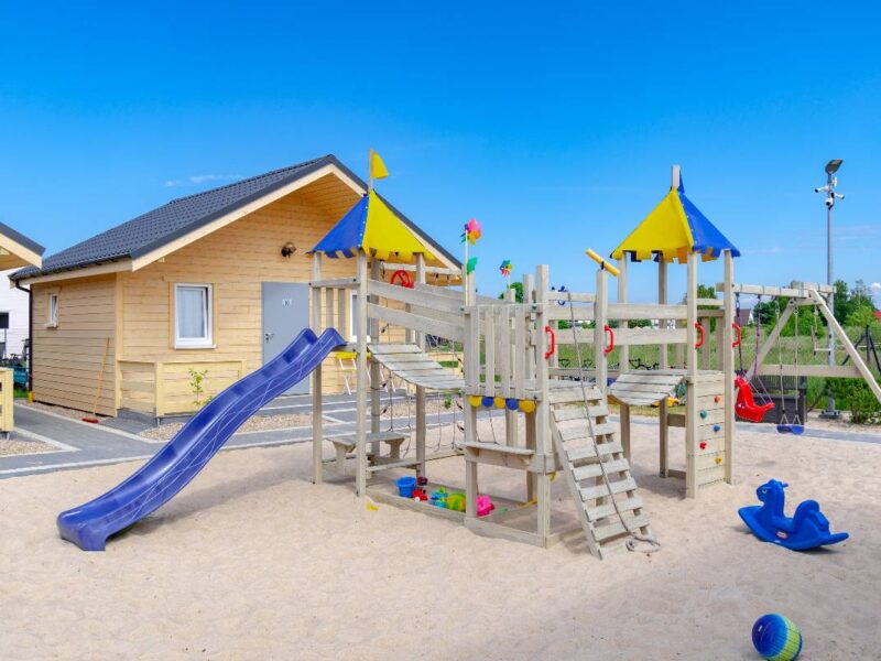 - 🎡 Plac zabaw – huśtawki, piaskownica z morskim piaskiem