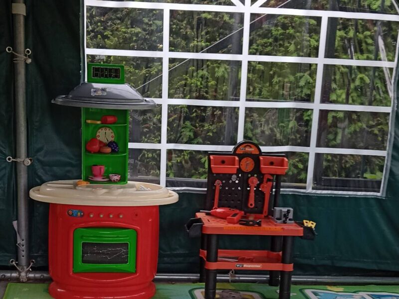 - 🍽 Nowoczesna kuchnia – z kuchenką, czajnikiem, lodówką i naczyniami.