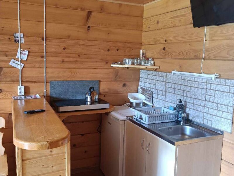 Serdecznie zapraszamy do naszych komfortowych domków, gdzie znajdą Państwo wszystko, czego potrzebują do udanego wypoczynku. Nasze domki składają się z 2 pokoi, które pomieszczą łącznie 5 osób. Posiadają one również przestronny aneks kuchenny, wyposażony we wszystkie niezbędne sprzęty, telewizor oraz dodatkowe łóżko. W domkach znajduje się również łazienka z prysznicem oraz dostęp do bezprzewodowego Internetu.