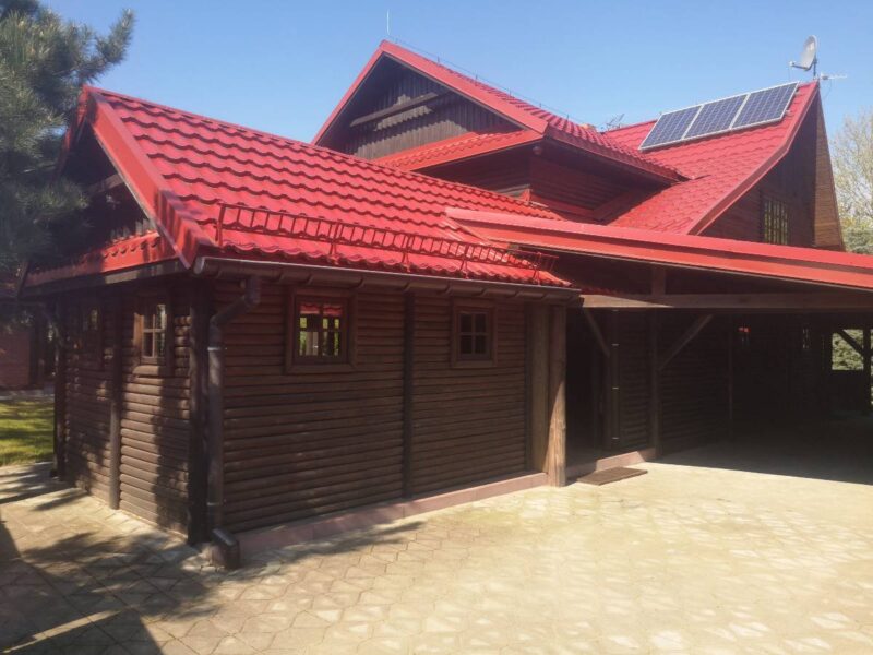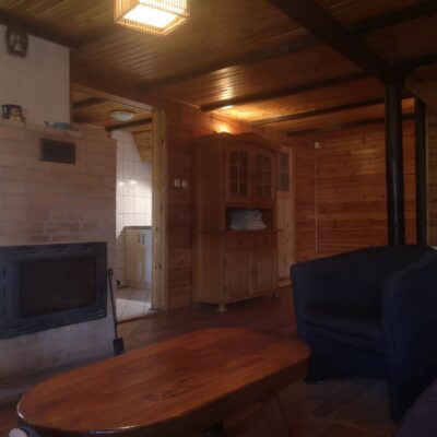 Drewniany, dwupoziomowy domek, który zapewnia wyjątkowy klimat i komfortowy wypoczynek.