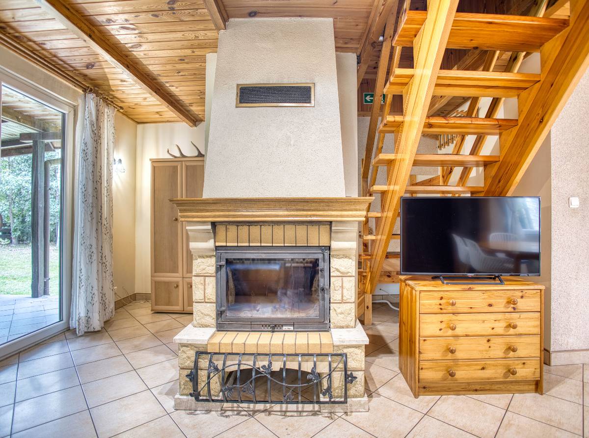 - 🔥 Salon z kominkiem, telewizorem i radiem