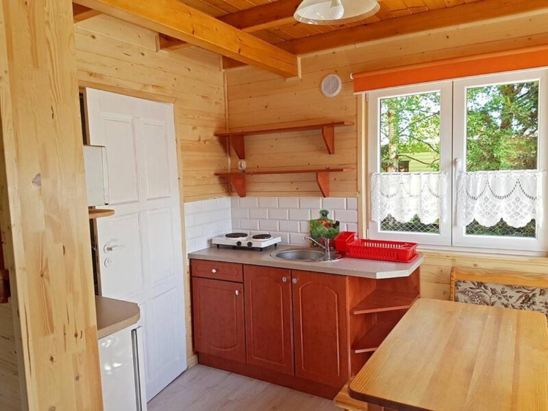 🍽 W pełni wyposażony aneks kuchenny – lodówka, kuchenka elektryczna, mikrofalówka, czajnik i komplet naczyń
