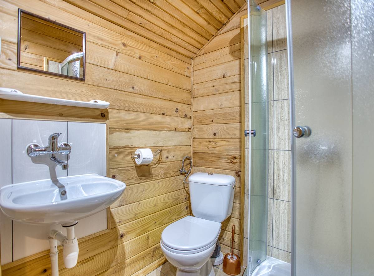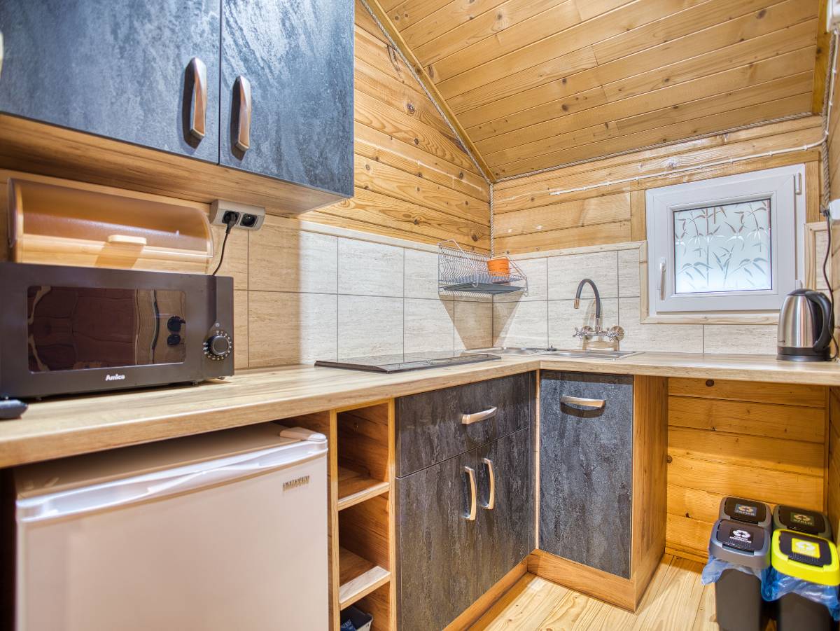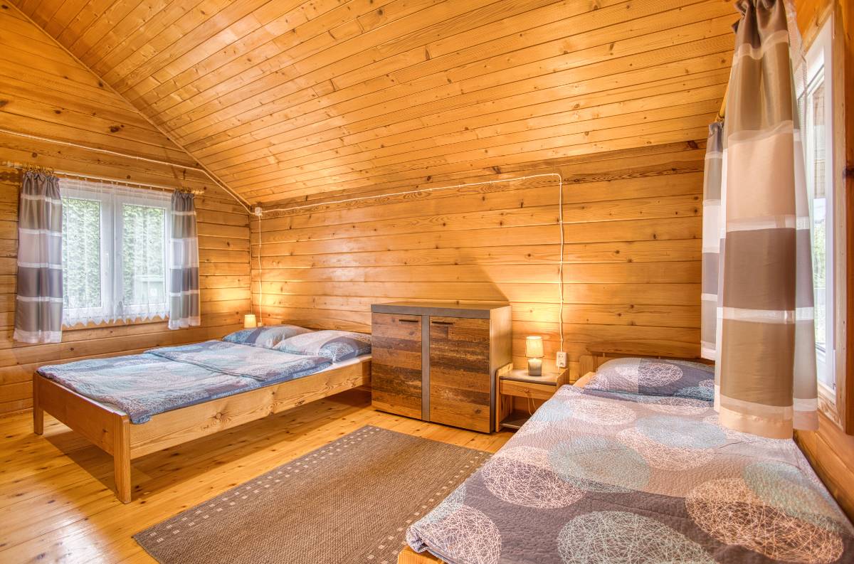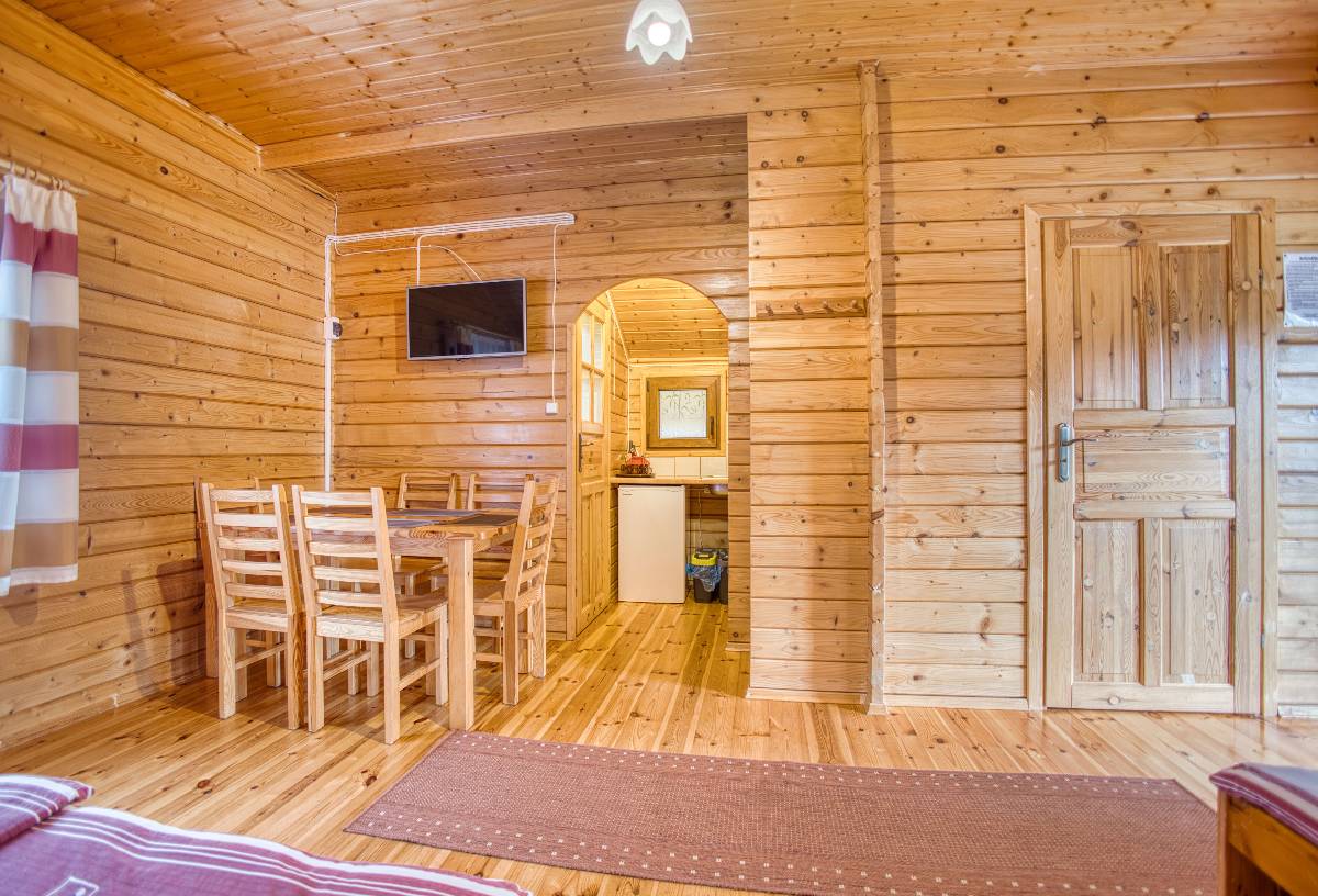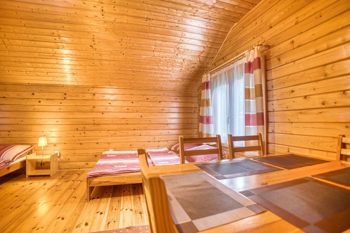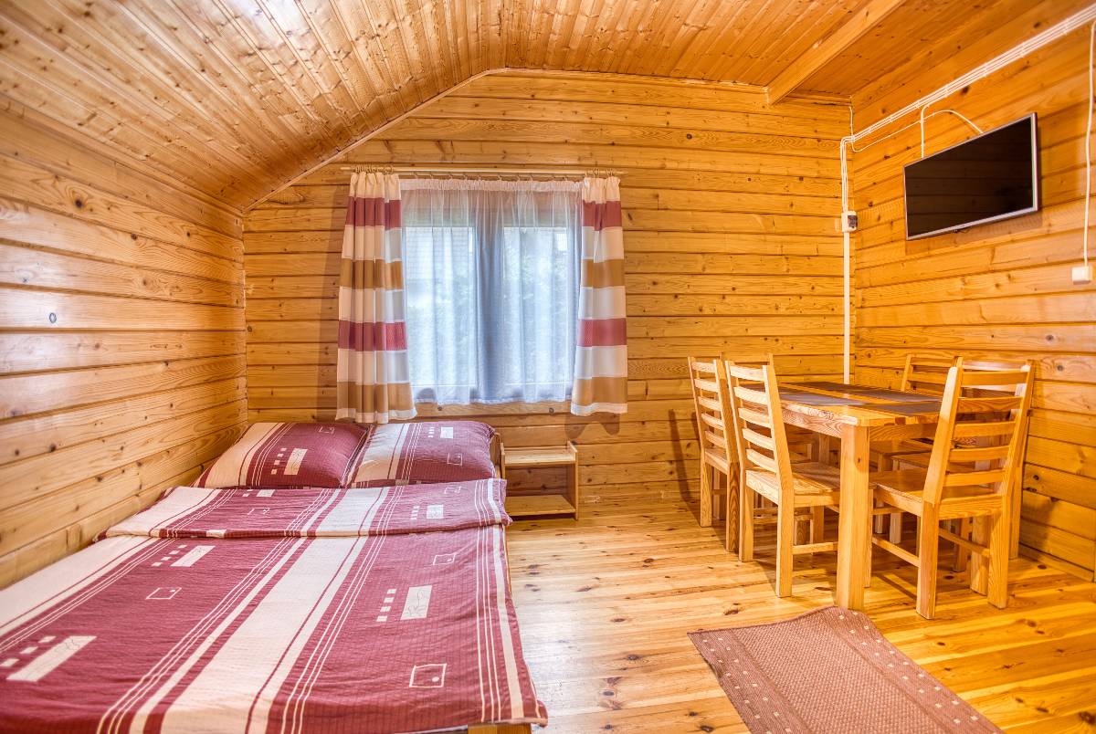 Nasze drewniane domki tworzą przytulny klimat i zapewniają wygodę dla rodzin oraz grup przyjaciół. Każdy domek składa się z: