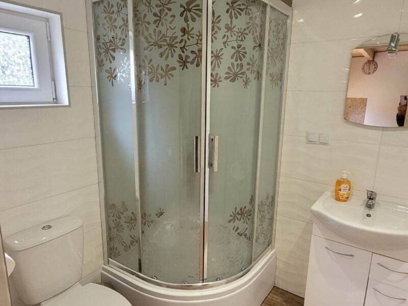 - Łazienka: kabina prysznicowa, umywalka, WC