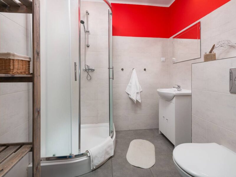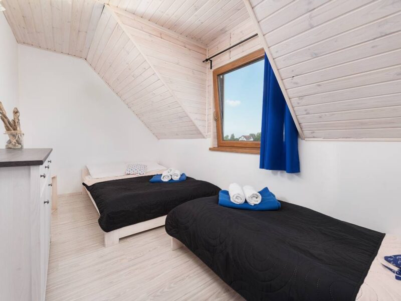 - 🛏 Piętro: 2 sypialnie – każda z łóżkiem podwójnym i pojedynczym