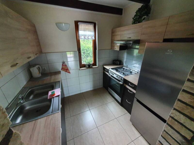 ✔ W pełni wyposażoną kuchnię (lodówka, czajnik elektryczny, płyta grzewcza, komplet naczyń i sztućców) 🍽️