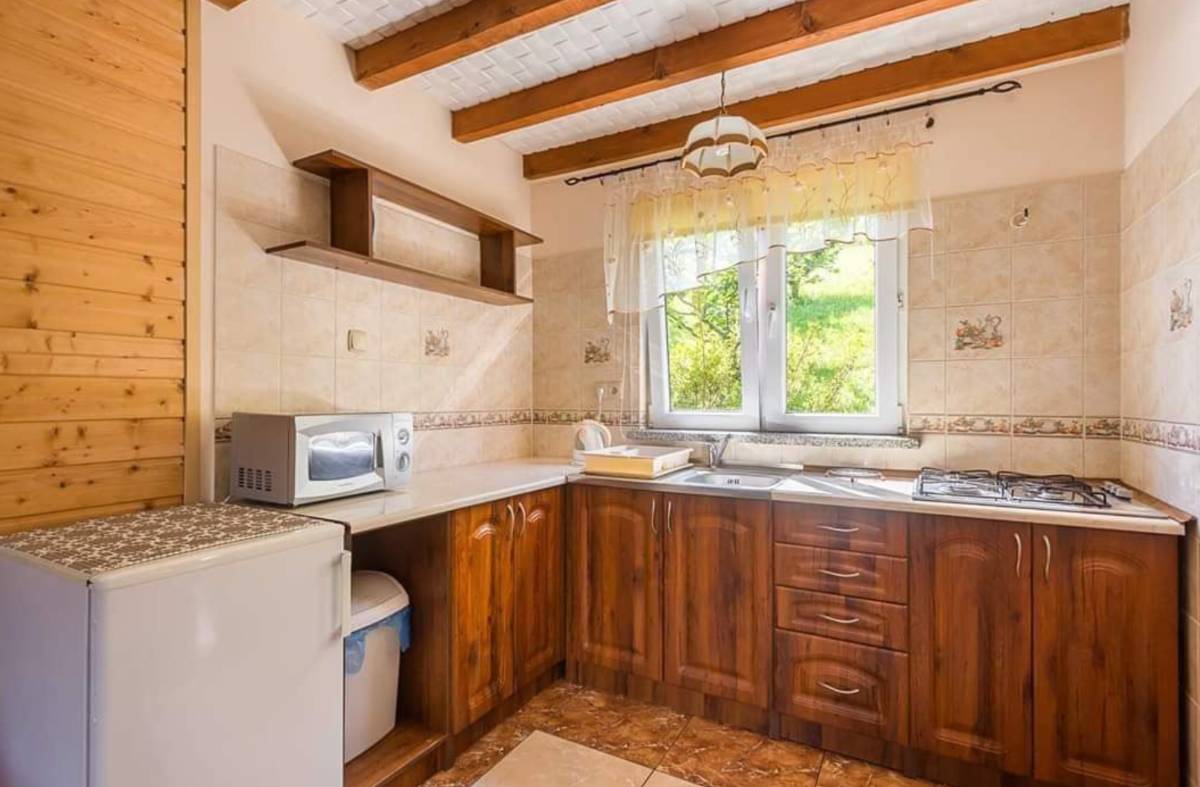 ✅ W pełni wyposażony aneks kuchenny (lodówka, czajnik elektryczny, kuchenka gazowa, komplet garnków i sztućców)