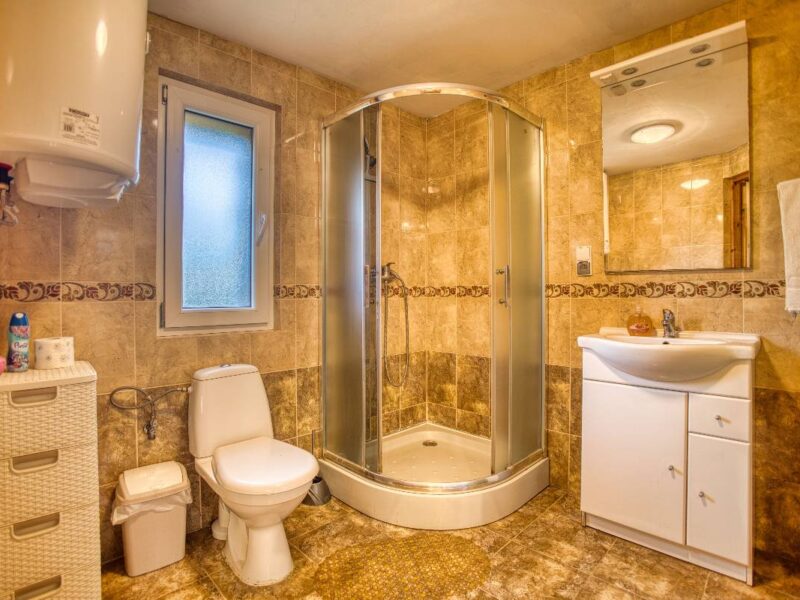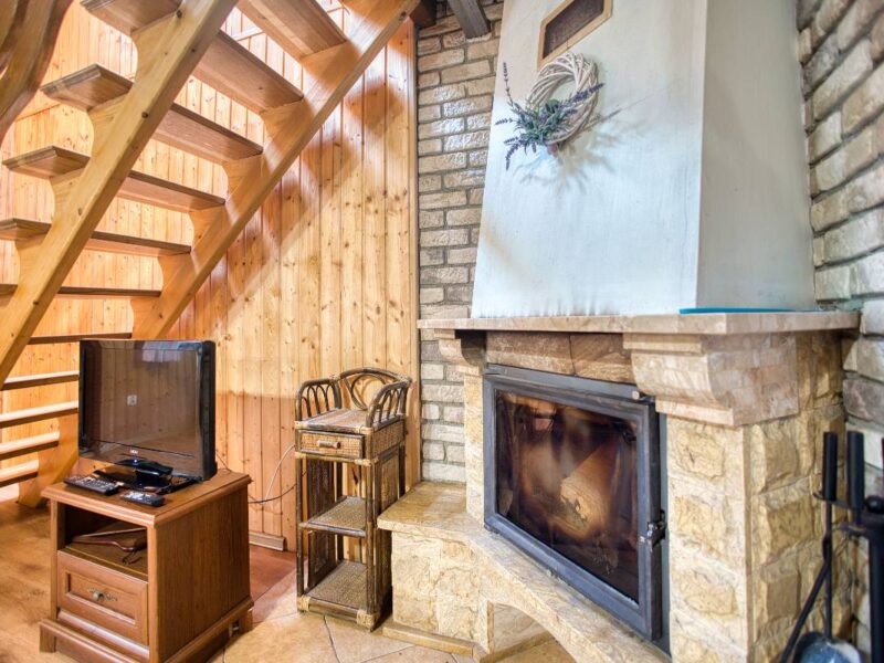 - 🔥 Parter: salon z kominkiem i TV, aneks kuchenny (lodówko-zamrażarka, kuchenka gazowa, komplet naczyń), łazienkę z prysznicem