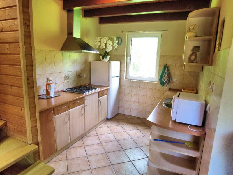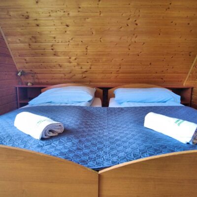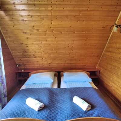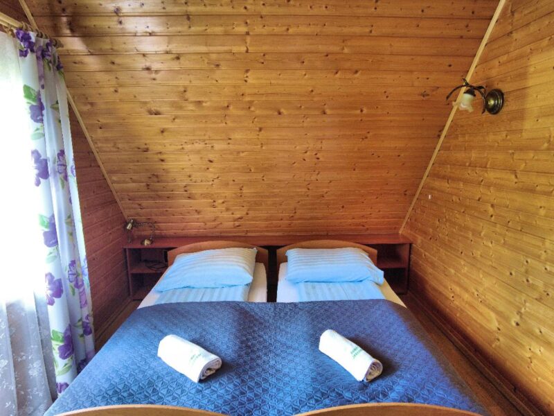 Oferujemy 8 drewnianych domków, które zapewniają komfort przez cały rok. Każdy domek jest dwupoziomowy i przeznaczony dla 2 do 7 osób.