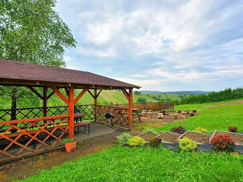 Nasze domki są doskonale wyposażone, aby zapewnić Ci wygodę i relaks. Każdy z nich posiada przestronny salon z kominkiem, w pełni wyposażoną kuchnię oraz przytulne sypialnie. Dodatkowo, na terenie naszego ośrodka znajdziesz liczne atrakcje, takie jak plac zabaw dla dzieci, miejsce do grillowania oraz taras widokowy, skąd rozpościera się zapierający dech w piersiach widok na okolicę.