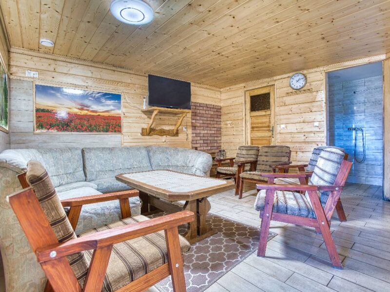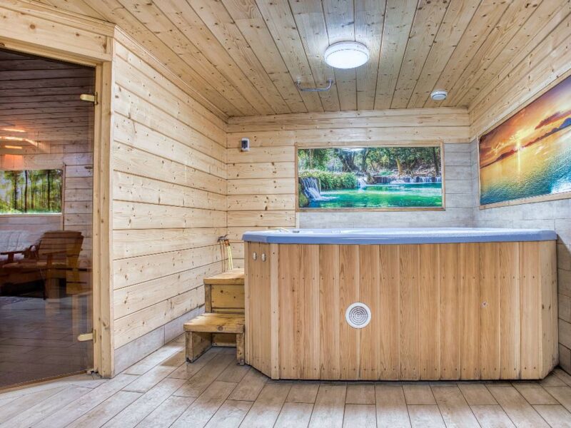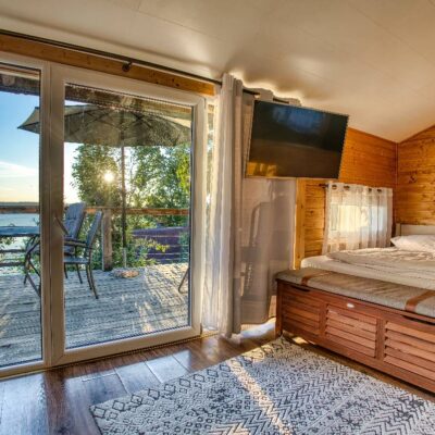 - Strefa relaksu – sauna, jacuzzi oraz komfortowy taras z widokiem na jezioro, idealny na odpoczynek po aktywnym dniu.