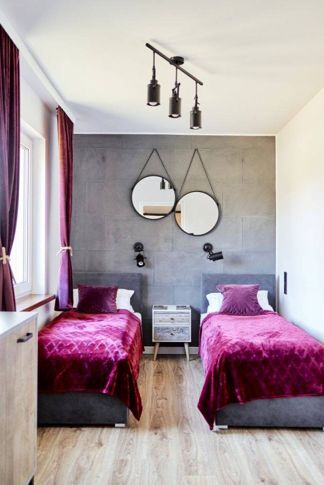 Każda sypialnia wyposażona jest w dwa łóżka z możliwością połączenia, stolik, fotele lub krzesła, szafę lub komodę, oświetlenie nocne z gniazdami USB oraz zasłony zapewniające dobre zaciemnienie. Pokoje oferują bezpłatne Wi-Fi i komfort sprzyjający zarówno odpoczynkowi, jak i pracy.