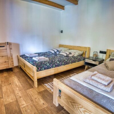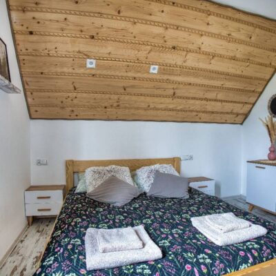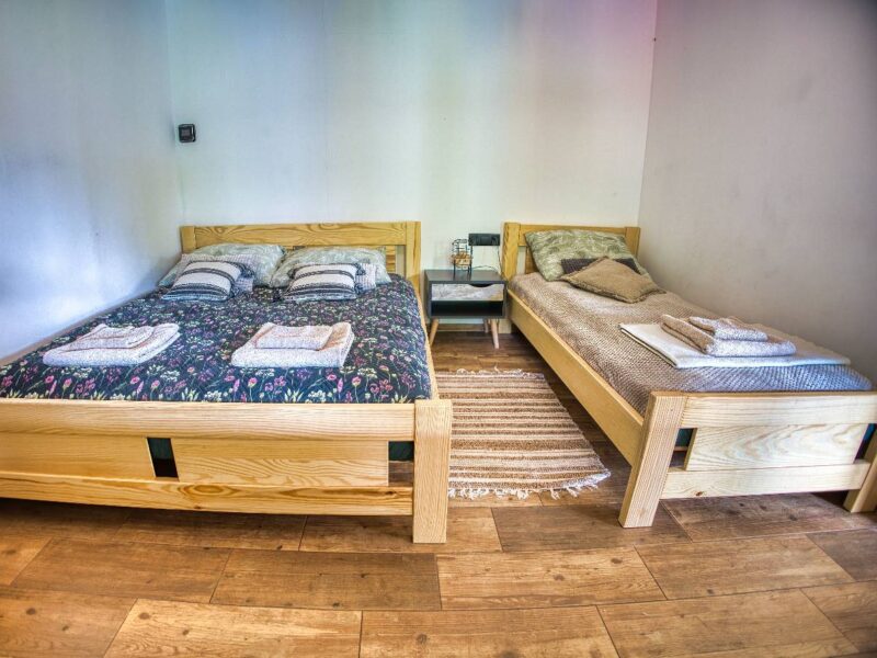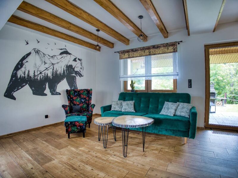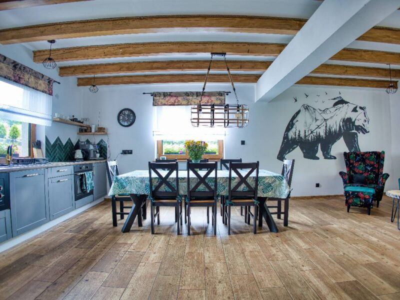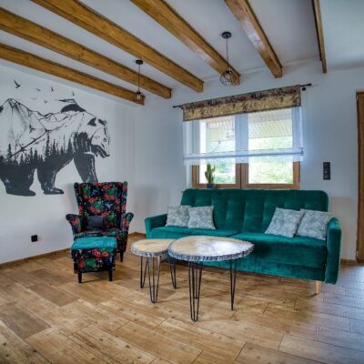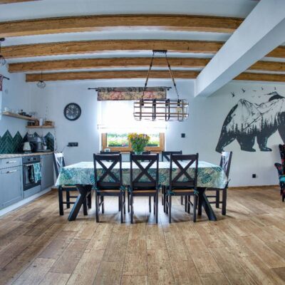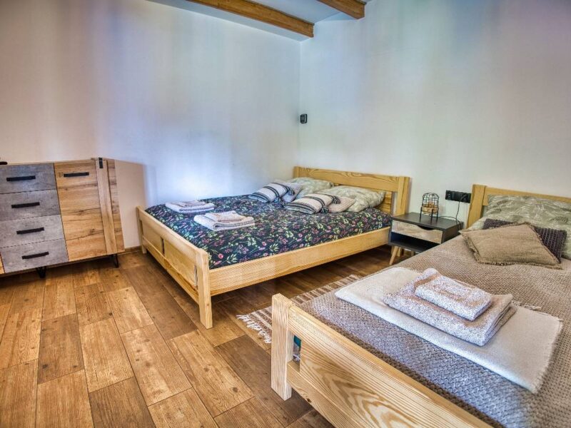 Gabra Chata to przestronny dom, który oferuje wygodę i swobodę nawet dla większych grup. Dzięki przemyślanemu układowi pomieści nawet 10 osób, a wnętrza zostały zaprojektowane z dbałością o detale i klimat regionu.