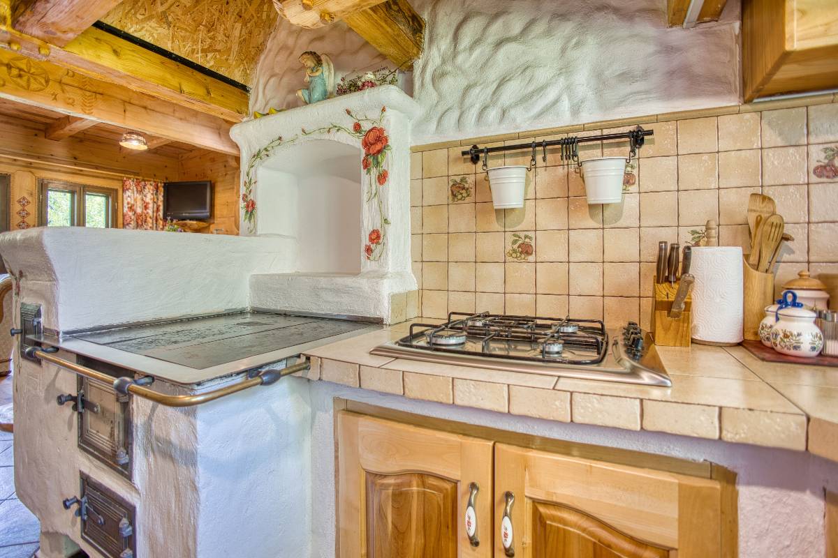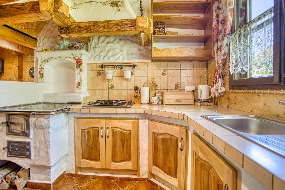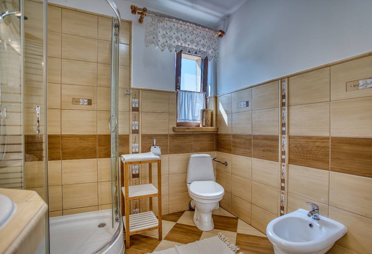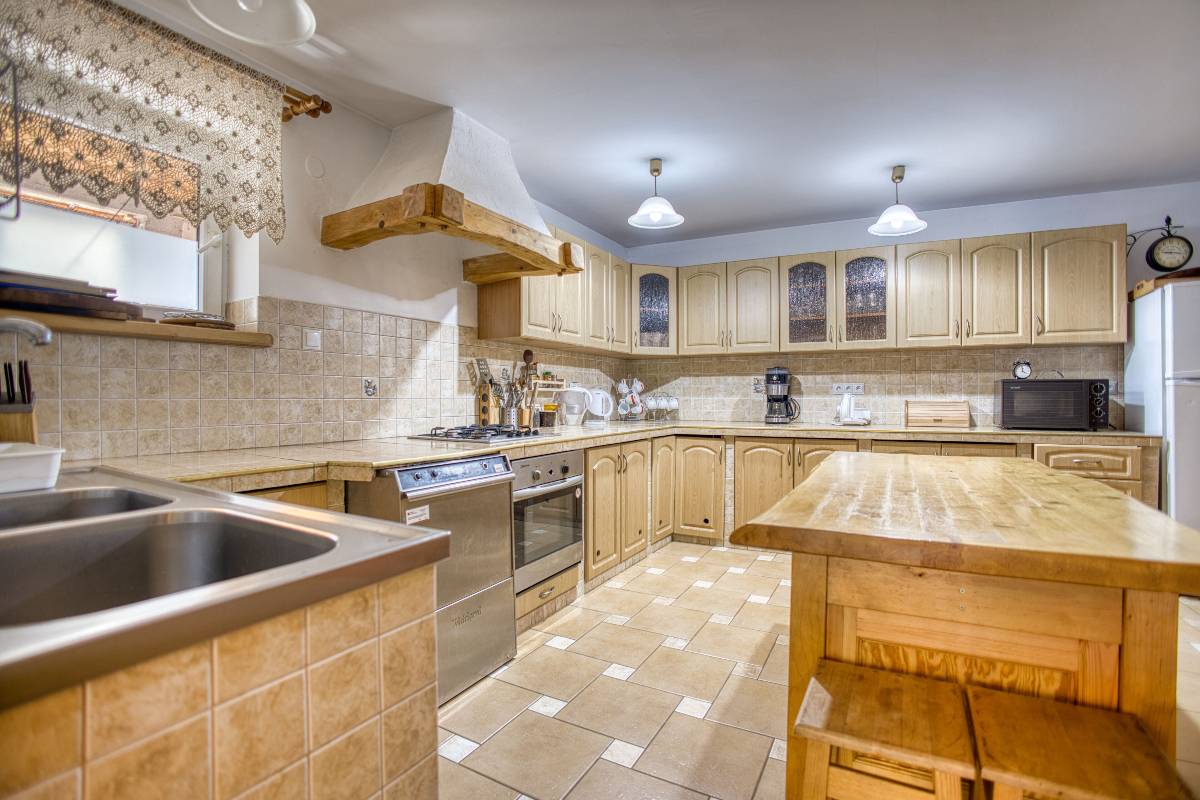 - 🏡 Domek Łemkowski – stylowy dom z bali dla rodzin i grup, z 3 sypialniami, 2 toaletami, kuchnią, salonem i przestronnym tarasem z widokiem na las.