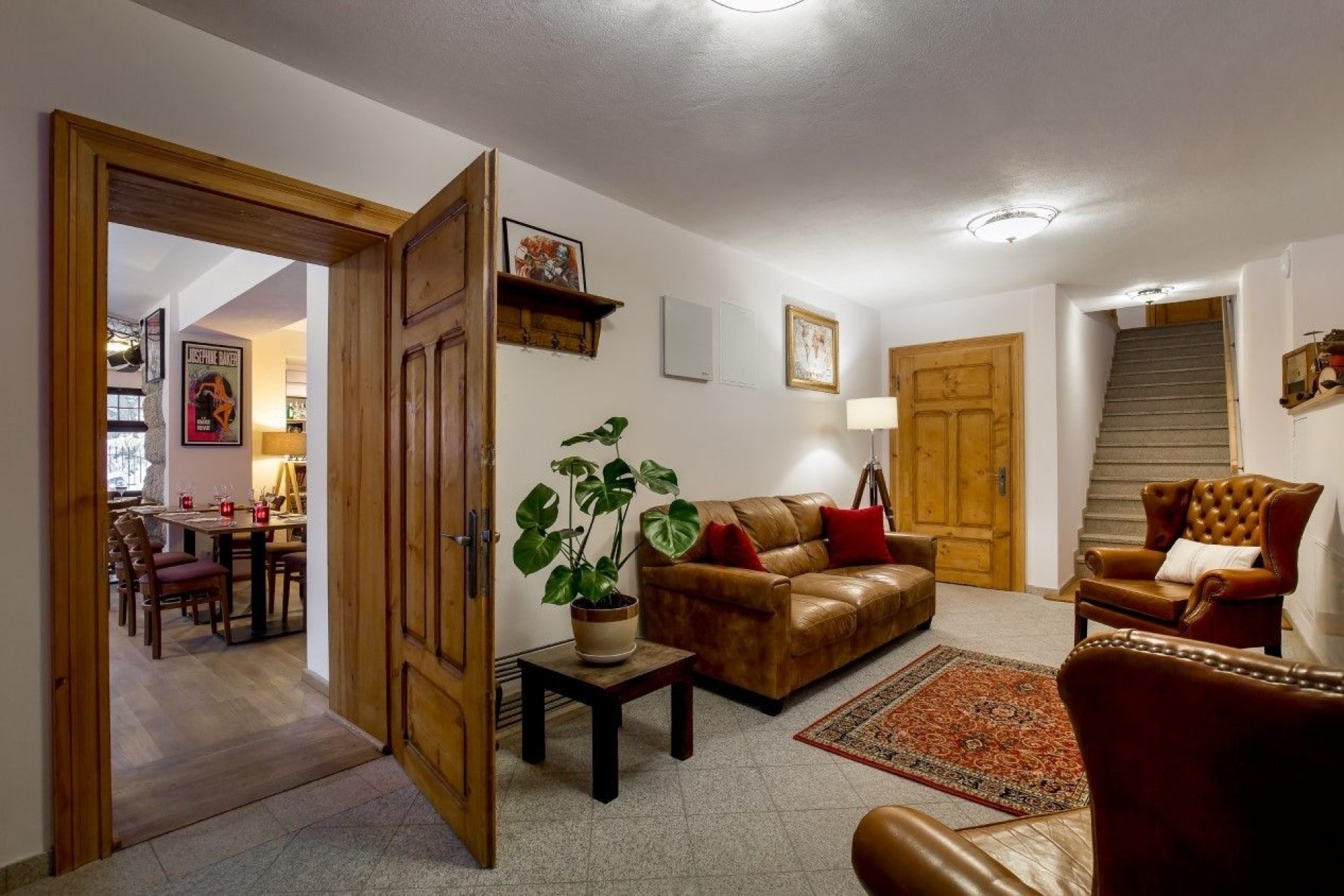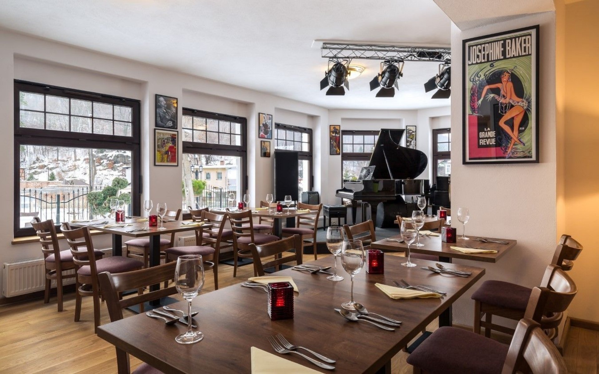 Na miejscu można zamówić ciepłą kolację, a wieczory umilają jazzowe dźwięki i płomień ognia w kominku. 🔥🎼