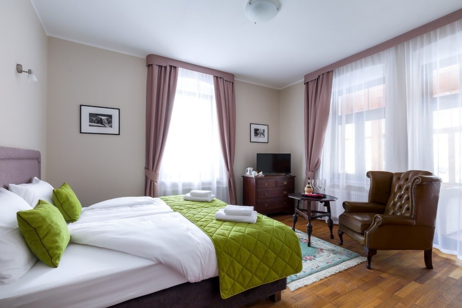 Gościniec oferuje przytulne i stylowo urządzone pokoje oraz apartamenty: